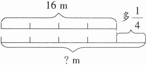对于第二个图,已知上面线段长度为$16m$,下面线段比上面线段多$\frac{1}{4}$,求下面线段的长度。先求出下面线段占上面线段的分率,再用上面线段的长度乘以该分率得到下面线段的长度。