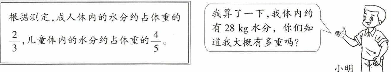 (2)数量关系式:$小明的体重×\frac{4}{5}=小明体内水分的质量$。