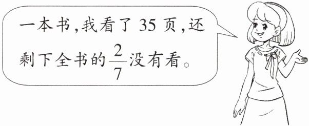 一条线段,代表这本书的总页数,将其分为7等份,其中5份表示已看的部分对应的份数,在这5份中标注出已看的35页,剩下2份标为未看的部分。