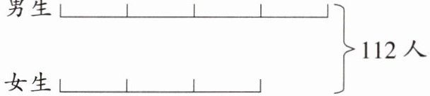 从图中可以看出,男生人数是 4 份,女生人数是 3 份,总人数是$4 + 3 = 7$份,总人数是$112$人。