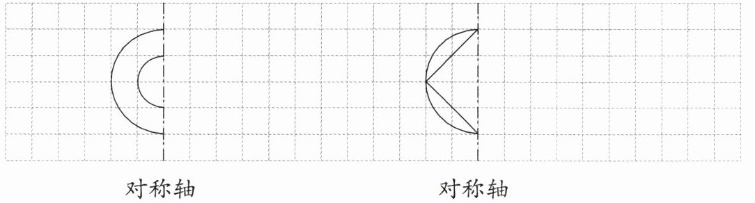 2. 根据对称轴分别画出下列轴对称图形的另一半。