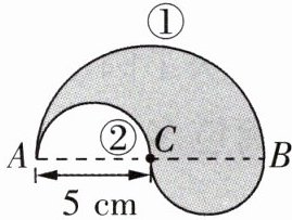 设小圆半径为$r$,大圆半径为$R$。由图可知$AC = 5\space cm$,$C$为$AB$中点,所以$AB=2AC = 10\space cm$,即$R=5\space cm$,$r=\frac{AC}{2}=2.5\space cm$。
