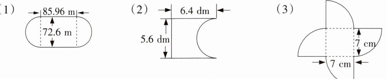圆的直径$d = 72.6m$,则圆的周长为$3.14×72.6 = 227.964m$,长方形两条长的长度为$85.96×2 = 171.92m$。