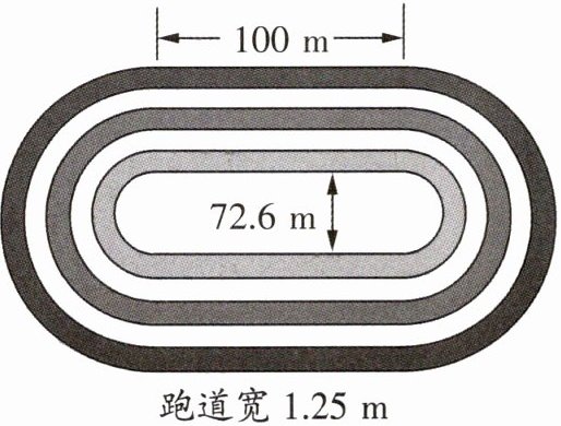 2. 第1题中,如果操场跑道上相邻两个半圆的半径相差1.25 m,那么相邻两条跑道的长度相差(