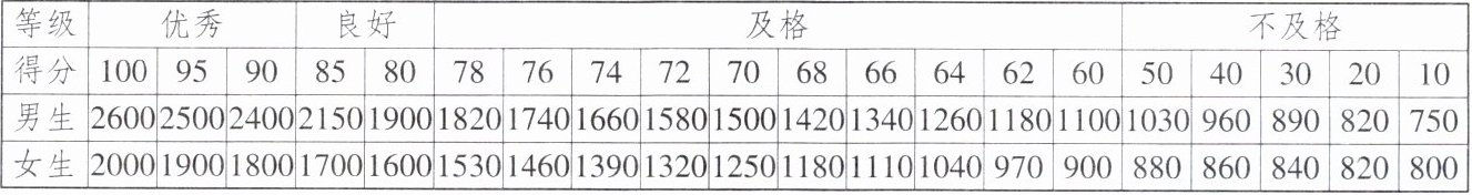 | 男生 | 2600 | 2500 | 2400 | 2150 | 1900 | 1820 | 1740 | 1660 | 1580 | 1500 | 1420 | 1340 | 1260 | 1180 | 1100 | 1030 | 960 | 890 | 820 | 750 | |