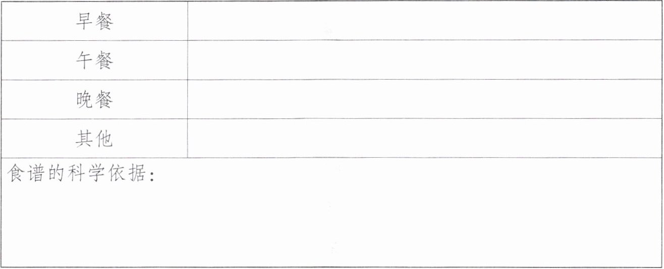 2. 填一填:做个小小的营养师——设计自己家庭一天的食谱。