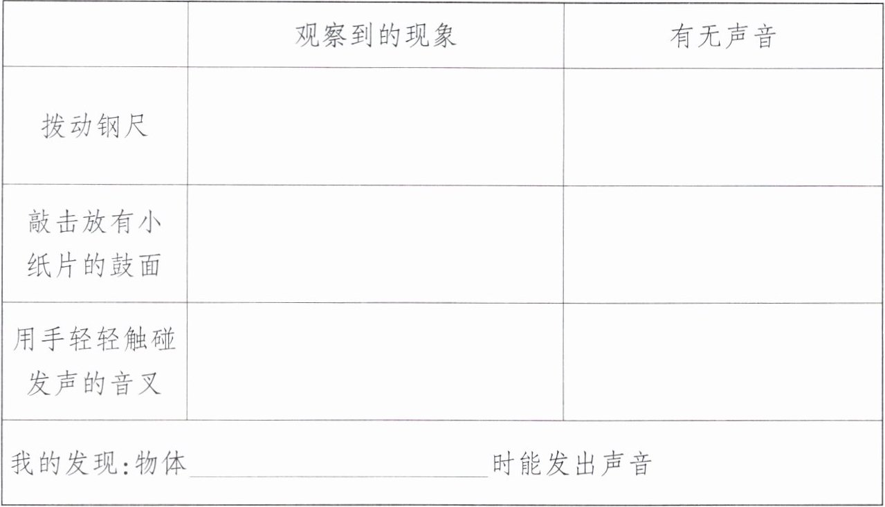 | 敲击放有小纸片的鼓面 | 鼓面振动,小纸片跳动 | 有 |