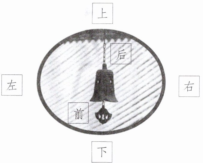 一个悬挂着的铃铛正在发声,请在能听到铃声的位置对应的方框内画“√”。