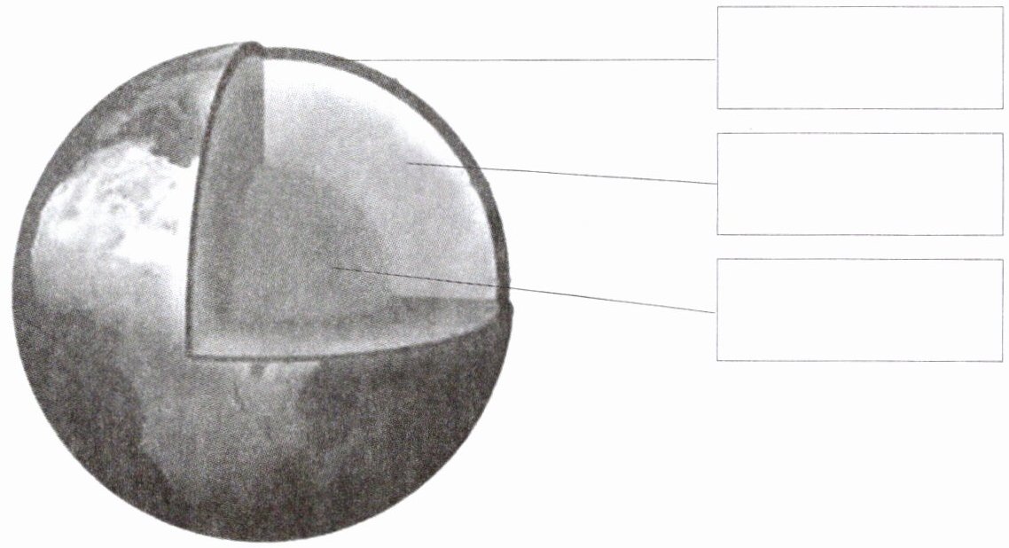 【解析】:本题主要考查对地球结构各部分名称的掌握。地球的结构从外到内主要分为地壳、地幔、地核三部分,根据图中所示以及所学知识,需要填写出这三部分的名称。
