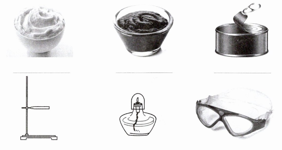土豆泥;番茄酱;罐头盒;铁架台;酒精灯;护目镜