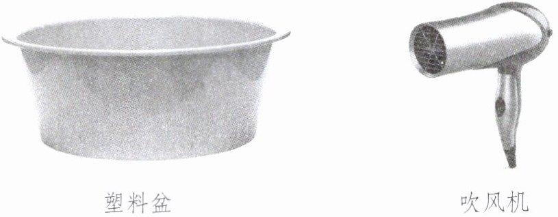 实验中,沙子和小石头代表不同的地表物质,吹风机模拟风的作用。当用吹风机向塑料盆另一侧吹沙子时,沙子会被风吹起并移动,而小石头由于质量较大,不易被风吹动。