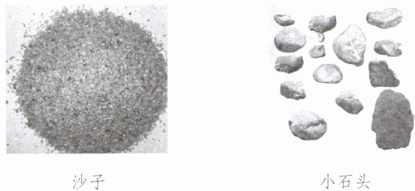 ②将沙子均匀地洒在小石头上,使其盖过小石头。