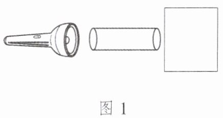 (2)分析两个图的特点,图1中卡纸B上的小孔、手电筒和纸屏A在同一条直线上,光可以沿着这条直线传播到纸屏A上,形成光斑。