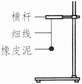 2. 小桃用铁架台、细线、橡皮泥组装了一个摆,如下图所示。他让摆自由摆动,摆在 15 秒内摆动了 20 次,小桃对摆进行调整,每次调整后重复测试,最终,摆每分钟正好摆动 60 次。