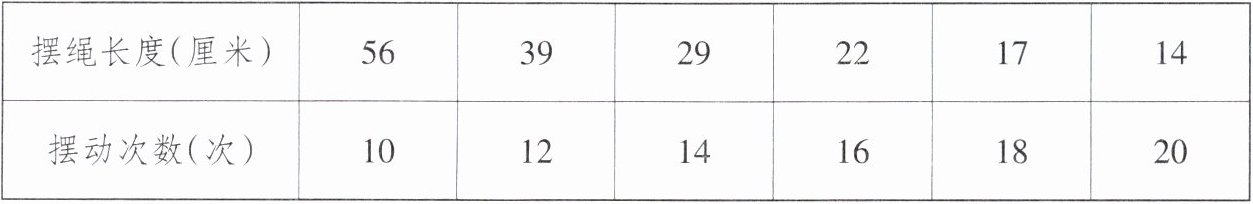 |摆绳长度(厘米)|56|39|29|22|17|14|
