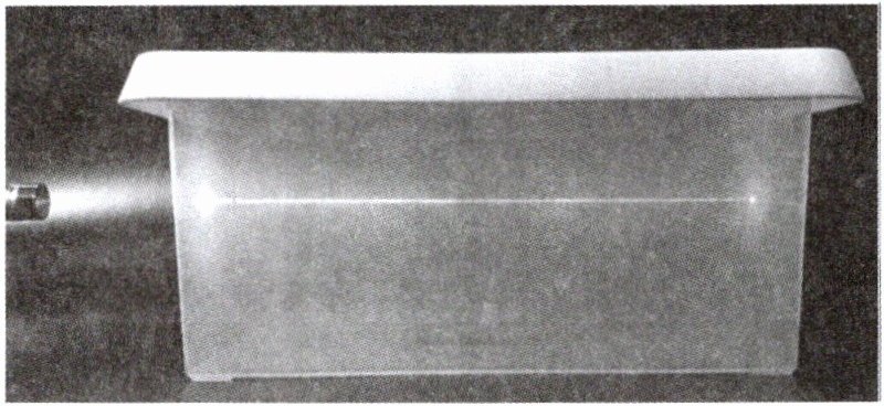 2. 探一探:如下图所示,用激光笔在放有线香的水槽的一侧照射。
