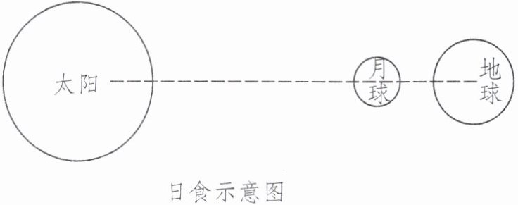 图略(在图中,太阳位于左侧,地球位于中间,月球位于地球的右侧,且太阳、地球、月球大致在一条直线上,表示地球挡住了照向月球的太阳光,形成月食现象)。