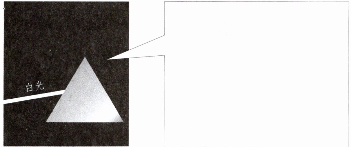 【解析】:本题主要考查光的色散现象,即白光通过三棱镜后会被分解成七种颜色的光。在解答时,需要理解并描述出白光经过三棱镜后的变化过程及结果。