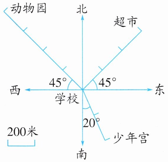 )米。(4)书店在学校南偏西30°的方向上,距离学校300米。请在图上标出书店的位置。