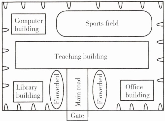 ( )7. A. gym B. music hall C. library D. school hall