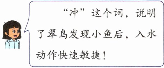“冲”这个词,说明了翠鸟发现小鱼后,入水动作快速敏捷!