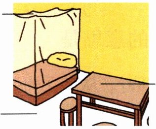 (3)落在蚊帐顶上→(噗噗)