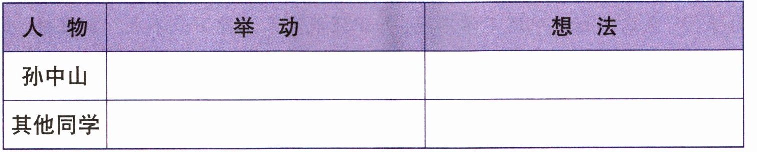 三 面对不懂的问题,孙中山的举动和其他同学有什么不同?他们分别是怎么想的?你更赞同谁的想法?请结合整篇课文完成下面的表格,并谈谈自己的观点。