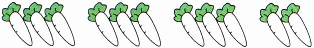 4. 一共有多少根白萝卜?列式正确的画“√”。