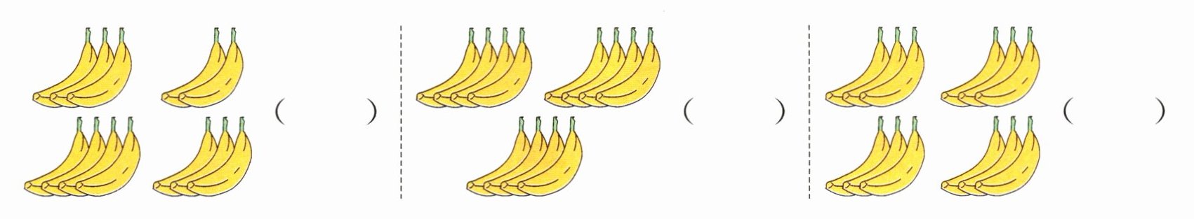 1. 把12根香蕉平均分给4个小朋友。下面哪种分法对?在对的( )里画“√”。