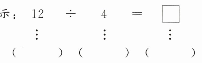 ( )个苹果,平均放( )盘,每盘( )个。 □÷□= □