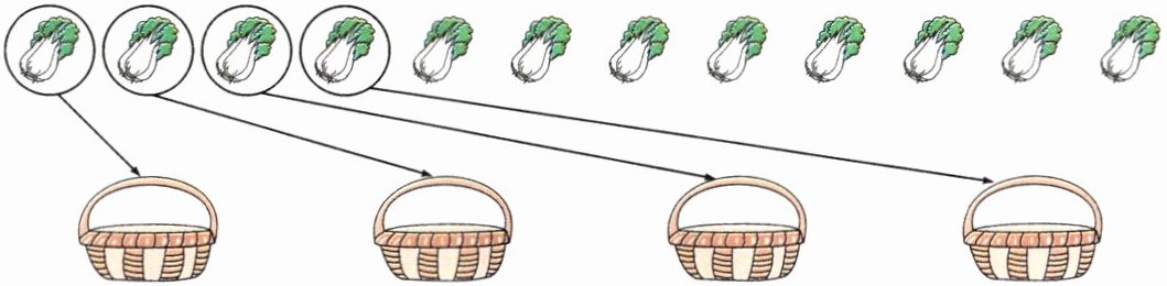 1. 把12棵大白菜平均装在4个篮子里,每篮装( )棵。