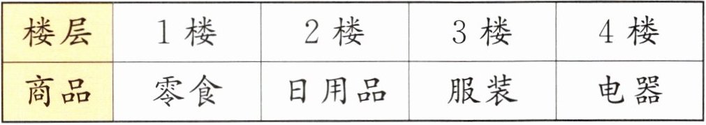 3. 下面是某商场的商品分布表。不在3楼售卖的商品有( )。(填序号)