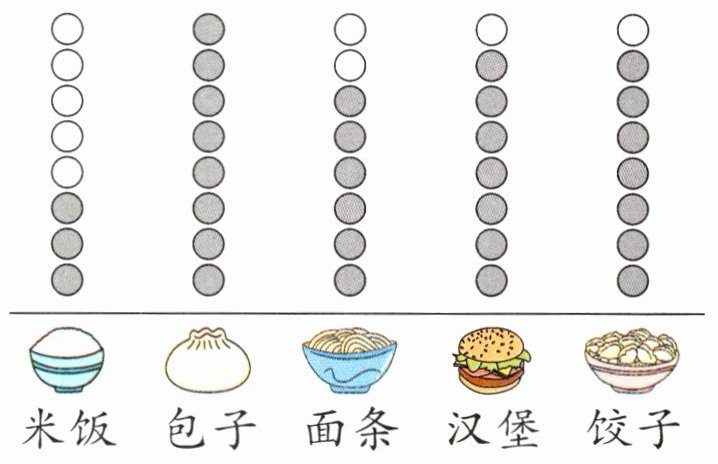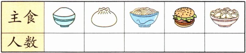 1. 二(1)班同学最喜欢的主食情况如下图。