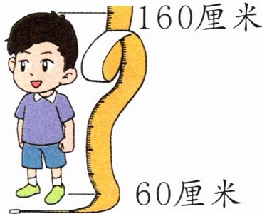 ③ 解析 皮尺拉直后,小朋友的头顶不到160厘米,那么小朋友的身高低于160-60=100(厘米),100厘米=1米,所以这个小朋友的身高比1米矮。本题选③。
