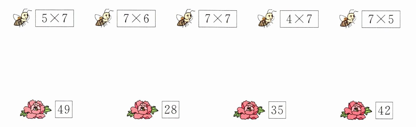 综上,连线结果为:$5×7$连$35$;$7×6$连$42$;$7×7$连$49$;$4×7$连$28$;$7×5$连$35$。