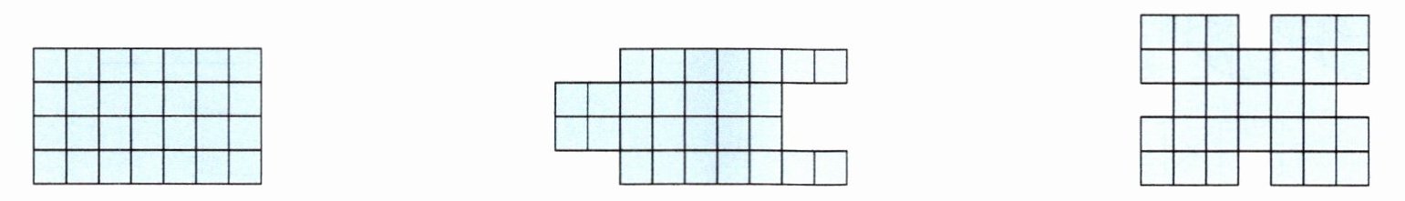 解析 第一个图有4行,每行有7个小正方形,一共有4×7=28(个)小正方形。第二个图有4行,每行有7个小正方形,一共有4×7=28(个)小正方形。第三个图有5行,添加4个小正方形后每行有7个小正方形,一共有5×7=35(个)小正方形,去掉添加的4个小正方形,可得第三个图有35-4=31(个)小正方形。