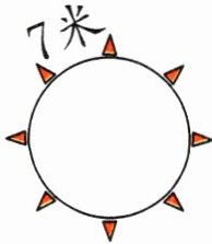 5. 如图,8个提示牌摆放成一圈,每相邻2个提示牌之间相隔7米。一圈长多少米?