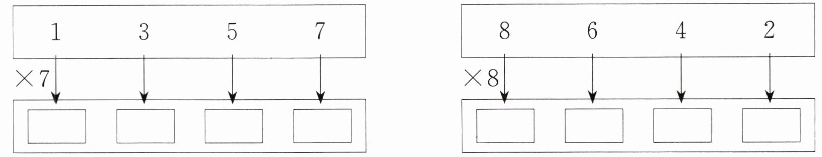 $\begin{array}{r} 1\quad 3\quad 5\quad 7\\ × 7\\ \hline □ \quad □ \quad □ \quad □ \end{array}\\ \hline □ \quad □ \quad □ \quad □ $