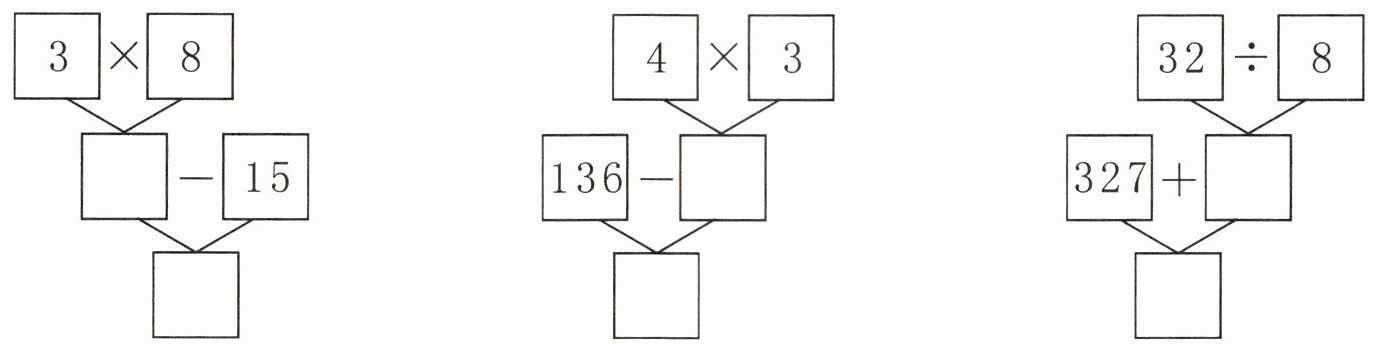 24 9 $3×8-15=9$ 12 124 $136-4×3=124$ 4 331 $327+32÷8=331$