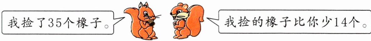 我捡了35个橡子。 我捡的橡子比你少14个。