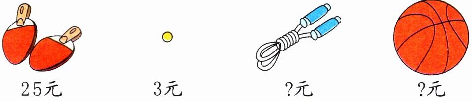 (1)一根跳绳的价格是一个乒乓球的2倍,一个篮球的价格比一根跳绳的8倍多5元,一个篮球多少元?