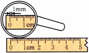 1. 如右图,1厘米的长度里有( )个小格,每个小格的长度是1( ),所以1厘米= ( )毫米。