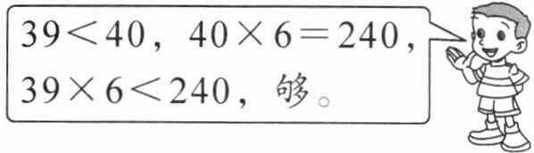 3.学校组织学生参加消防安全宣传活动。三年级有6个班,每个班有39人,准备240把椅子够吗? 下面是小明的想法,他解决得对吗? 请说明你的理由。