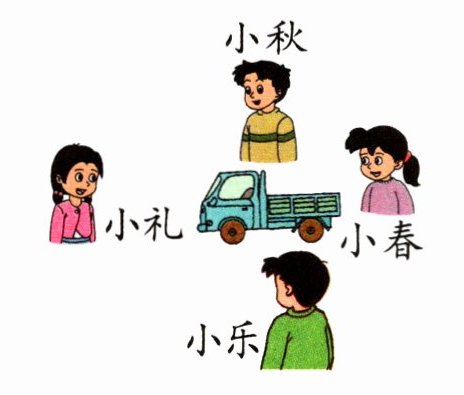 小乐 小礼 小春 小秋 解析 从小礼的位置观察,看到的是卡车的前面,是右面第二幅图;从小春的位置观察,看到的是卡车的车尾,是右图第三幅图。本题易错点是小乐和小秋看到的图,他们看到的都是卡车的侧面,但是观察到的车头方向不同,由此确定答案。小乐看到的车头朝他的左边,是右面第一幅图。小秋看到的车头朝他的右边,是右面第四幅图。