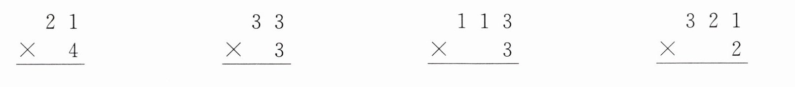 解析 用多位数乘一位数的方法进行计算。