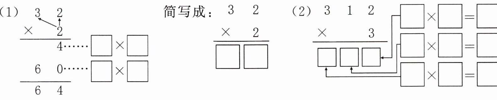 解析 笔算两、三位数乘一位数,用一位数分别去乘两、三位数每一位上的数,与哪一位相乘,就把得数写在积的相应位置上。
