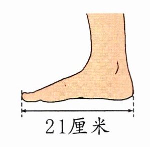 4. (生活运用)小书想买一双鞋子,他量出了自己的脚长是21厘米。小书应该买多少码的鞋子?