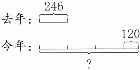 5. 某小学去年有246名学生订购牛奶,今年订购牛奶的人数比去年的3倍还多120名,今年有多少名学生订购牛奶? 246×3+120=858(名) (答案不唯一) 解析 观察线段图可知,今年的数量比去年的数量的3倍还多120,可以得到数量关系,今年数量=去年数量×3+120,然后根据这个数量关系提出问题,再解答即可。