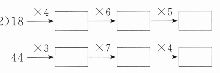 (2)18$\xrightarrow{×4}\boxed{\quad}$$\xrightarrow{×6}\boxed{\quad}$$\xrightarrow{×5}\boxed{\quad}$