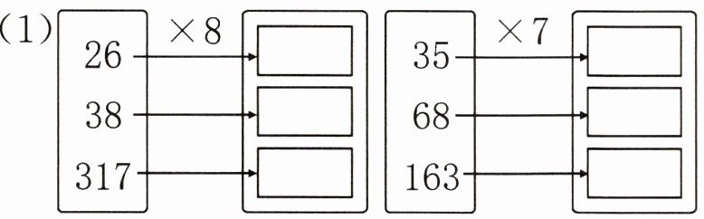 (1) $\boxed{26}\xrightarrow{×8}\boxed{\quad}$ $\boxed{35}\xrightarrow{×7}\boxed{\quad}$